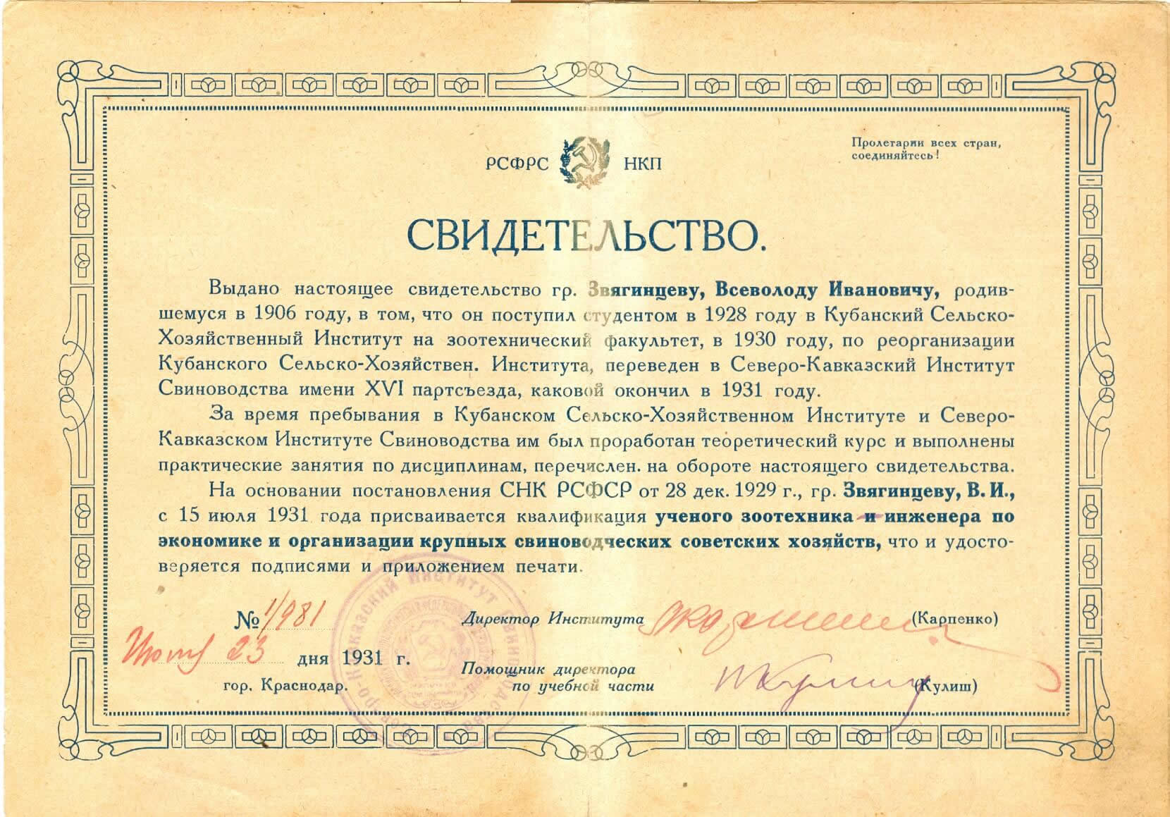 - Краснодарский региональный институт агробизнеса (дополнительное профессиональное высшее образование);