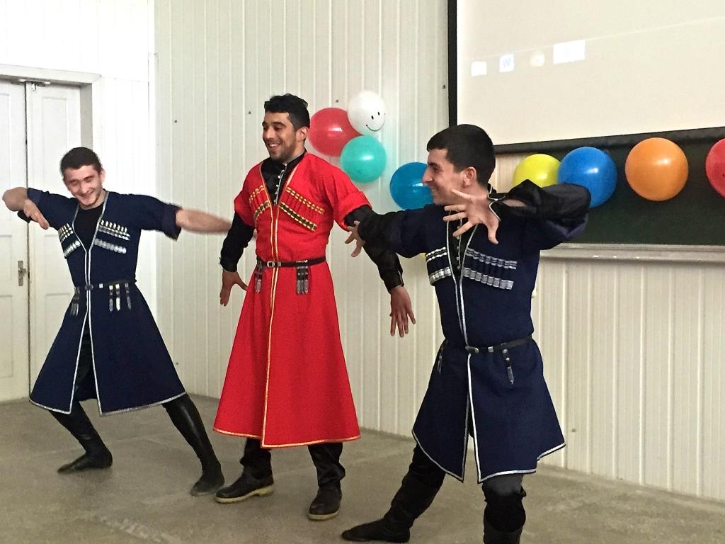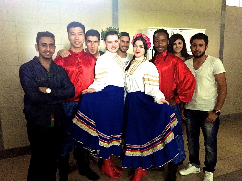 The foreigners of the Preparatory Department of KubSAU get to know the traditions and manners of Russian people. Particularly, the dancing culture is very interesting. The art of dancing is one of the most essential part of every kind of ethnos. Hatib Shihab al Deen from Israel has seen this fiery dance “Lezginka” at a wedding in Adygeja. So, Shihab got the dream to start dancing lezgnika. The dream helped him to carry this to his new friends Islam Kadimagomedov and Islam Tlevcerukov, students of the law faculty. After hard trainings they together performed in front of participants of the student conference “Political mentality of people in the world”. They were awarded with a storm of applause. At the same conference there was delight present of Russian folk dance, performed by Toan from Vietnam and Bahil from SA with Russian girls Dasha Plohothyuk and Svetlana Stasenok.