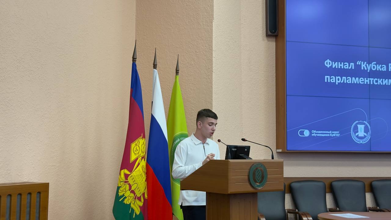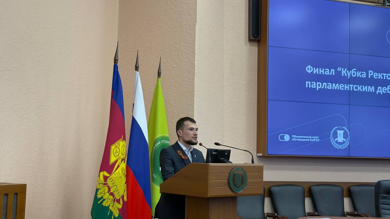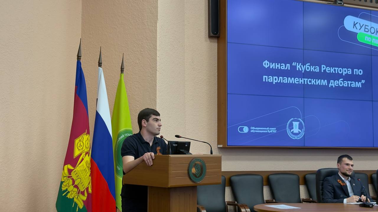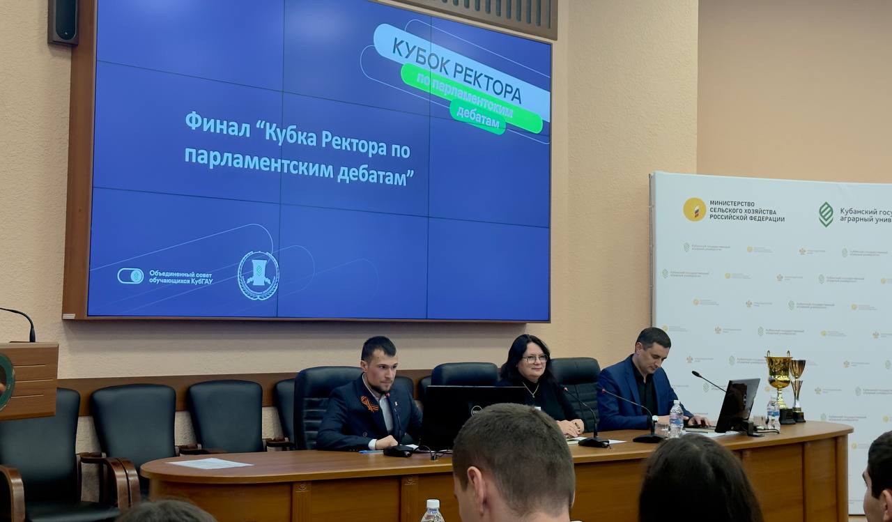 В Кубанском ГАУ состоялся финал проекта «Кубок ректора по парламентским дебатам». В мероприятии приняли участие проректор по международной и молодежной политике Татьяна Полутина, начальник отдела по воспитательной работе Владимир Сиренко, председатель клуба парламентских дебатов Виталий Погосян, студенты, сотрудники университета, и гости турнира. Организатором выступил Клуб парламентских дебатов.