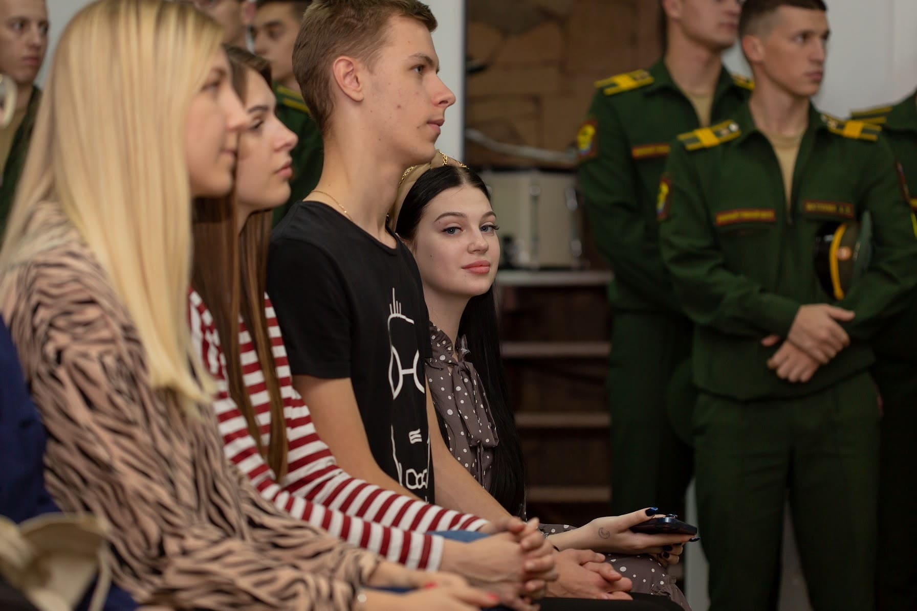 На конкурсе в молодежном центре «Синтез» равнодушных не было. Участников пришли подержать их друзья и однокурсники, а присутствие курсантов военного учебного центра в числе зрителей в зале придало незабываемую атмосферу.