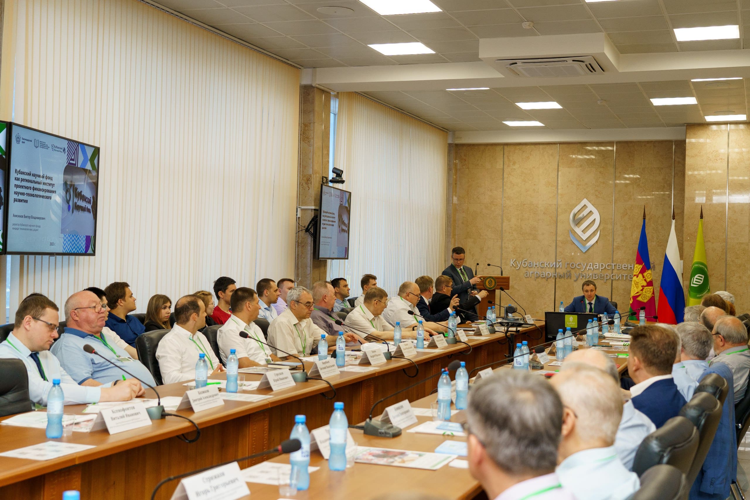 Директор Кубанского научного фонда Виктор Анисимов подробно рас-сказал присутствующим о мерах поддержки ученых и предприятий и о развитии сервисных услуг по продвижению научных проектов на базе фонда.