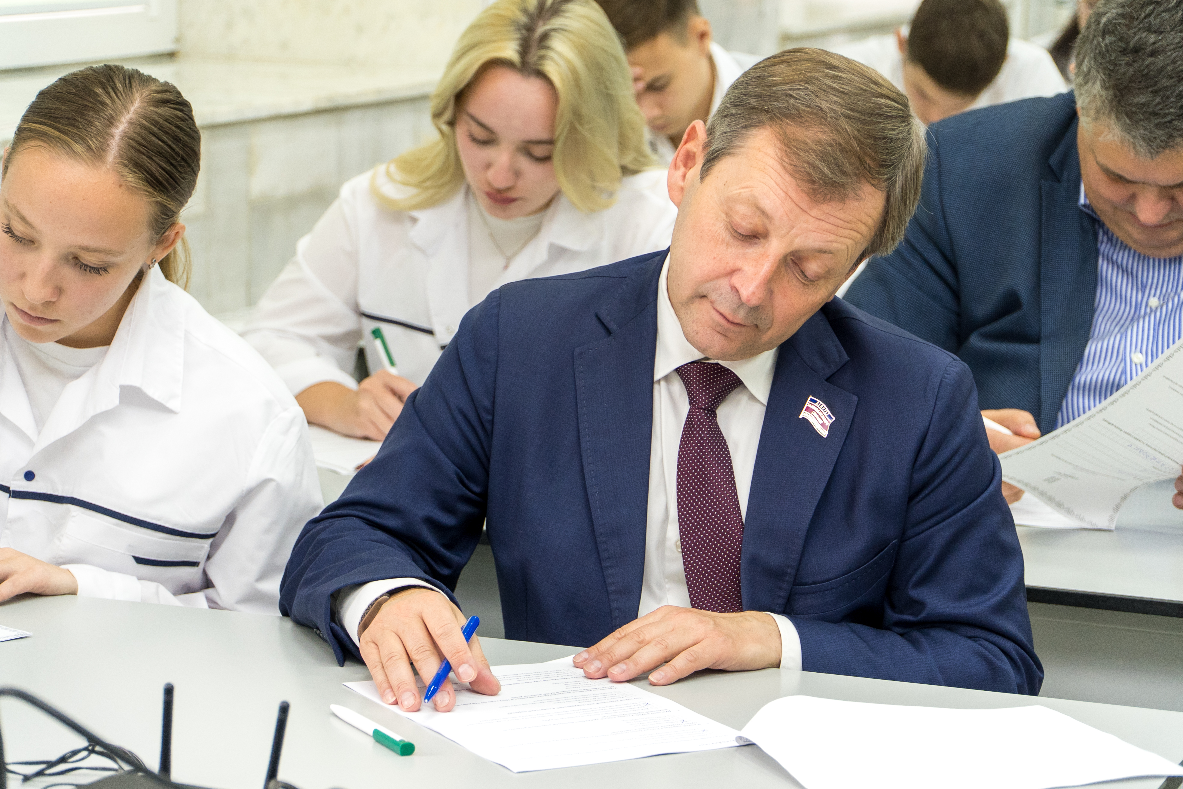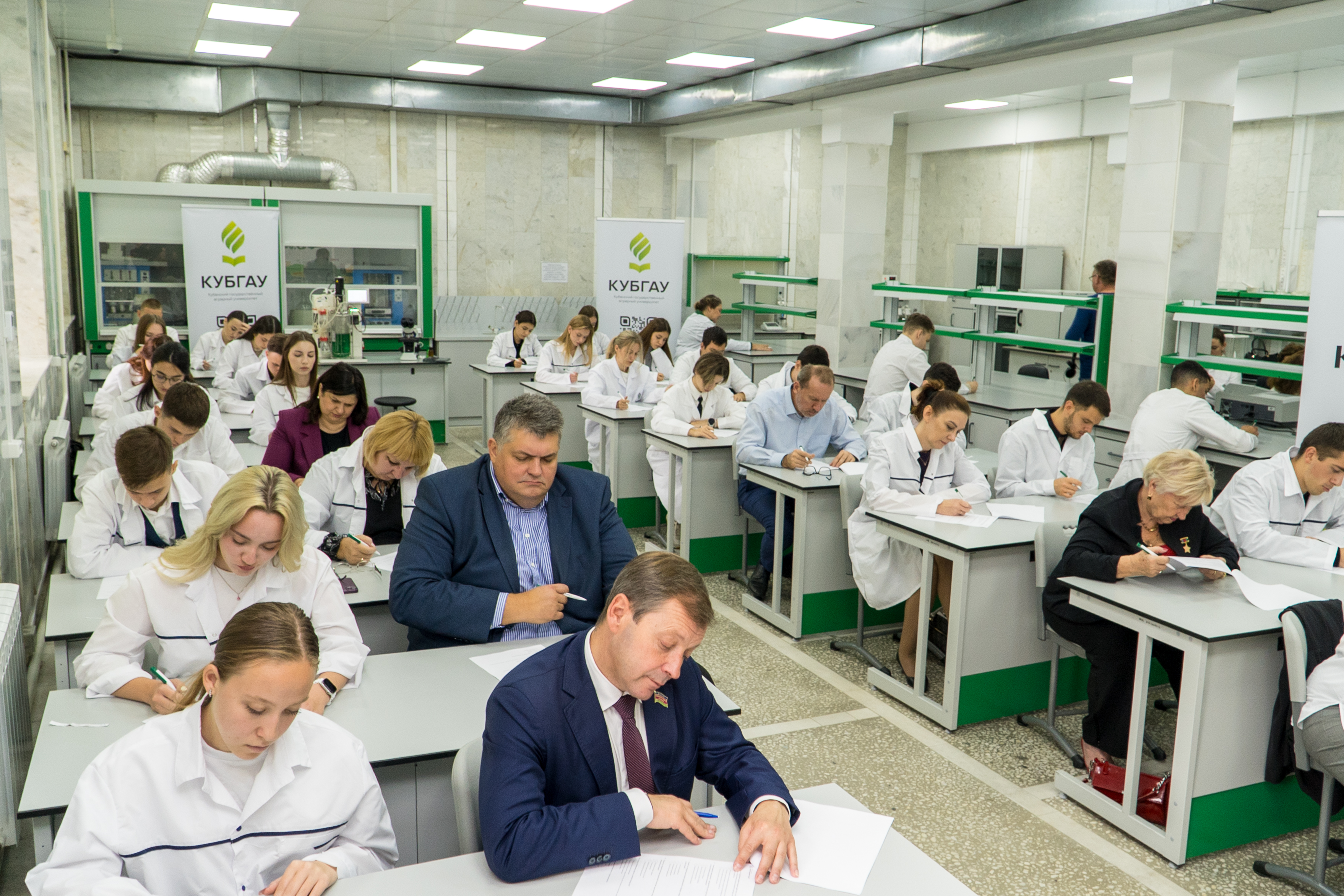 Площадка КубГАУ привлекла не только студентов и сотрудников КубГАУ, но и высокопоставленных гостей, которые лично пришли проверить свои знания. Среди тех, кто принял участие в диктанте, были: