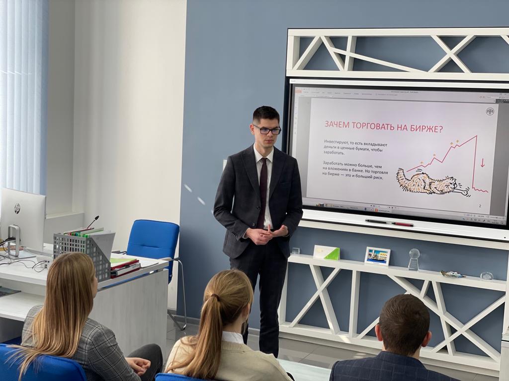 Лекцию провел заместитель начальника отдела по развитию корпоративного канала продаж РСХБ Кирилл Курило. В ходе лекции были затронуты вопросы: почему каждому важно начать инвестировать, как приумножить свои капитал, не имея опыта, как выбрать грамотную стратегию инвестирования и д.р.
