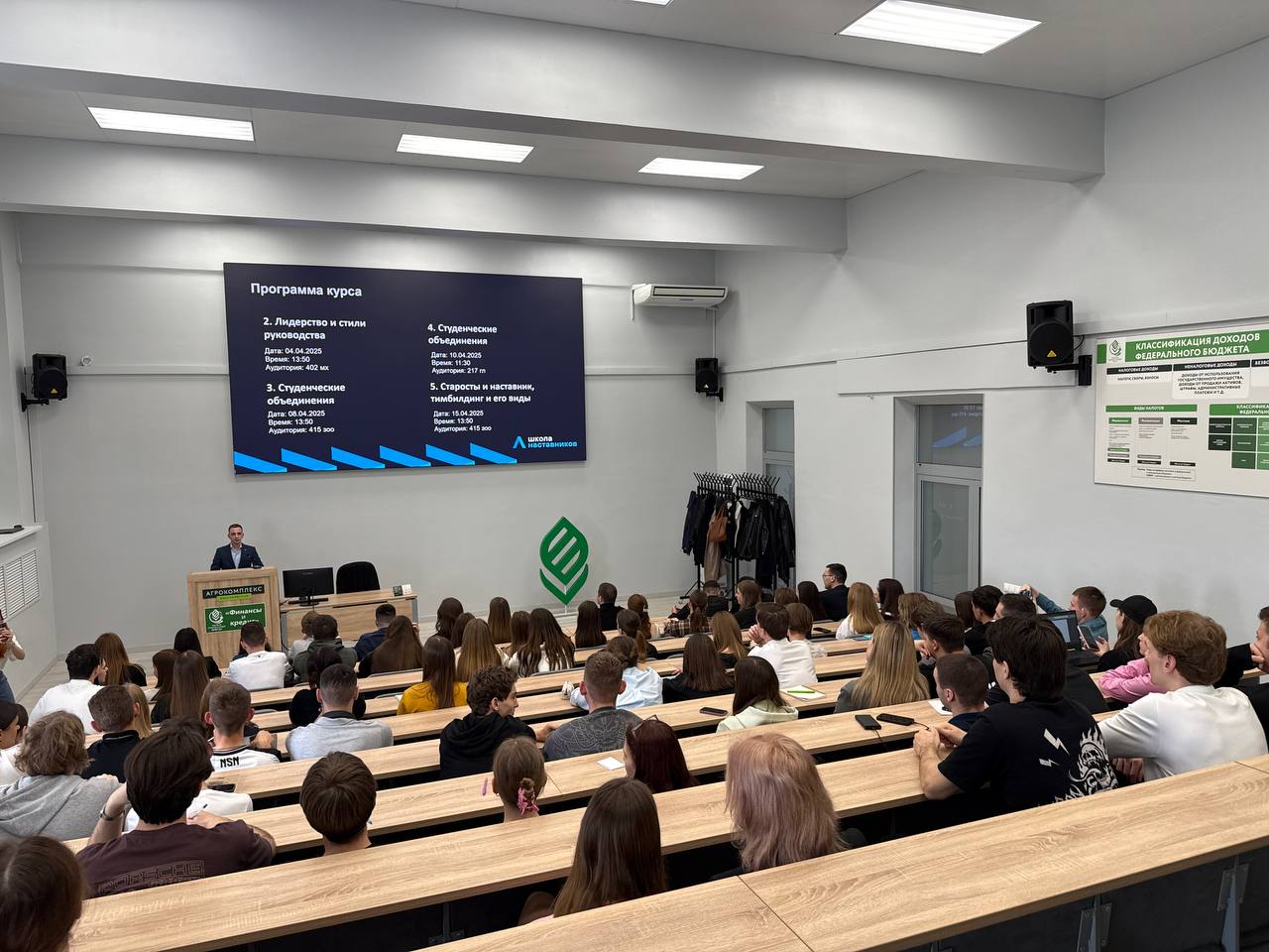 Руководитель проектной лаборатории Антон Бердников представил программу курса, которая включает несколько ключевых тем: лидерство и стили руководства, студенческие объединения, конфликтология, корпоративная этика, критическое мышление и коммуникация. Занятия пройдут в формате лекций, практических тренингов и творческих заданий.