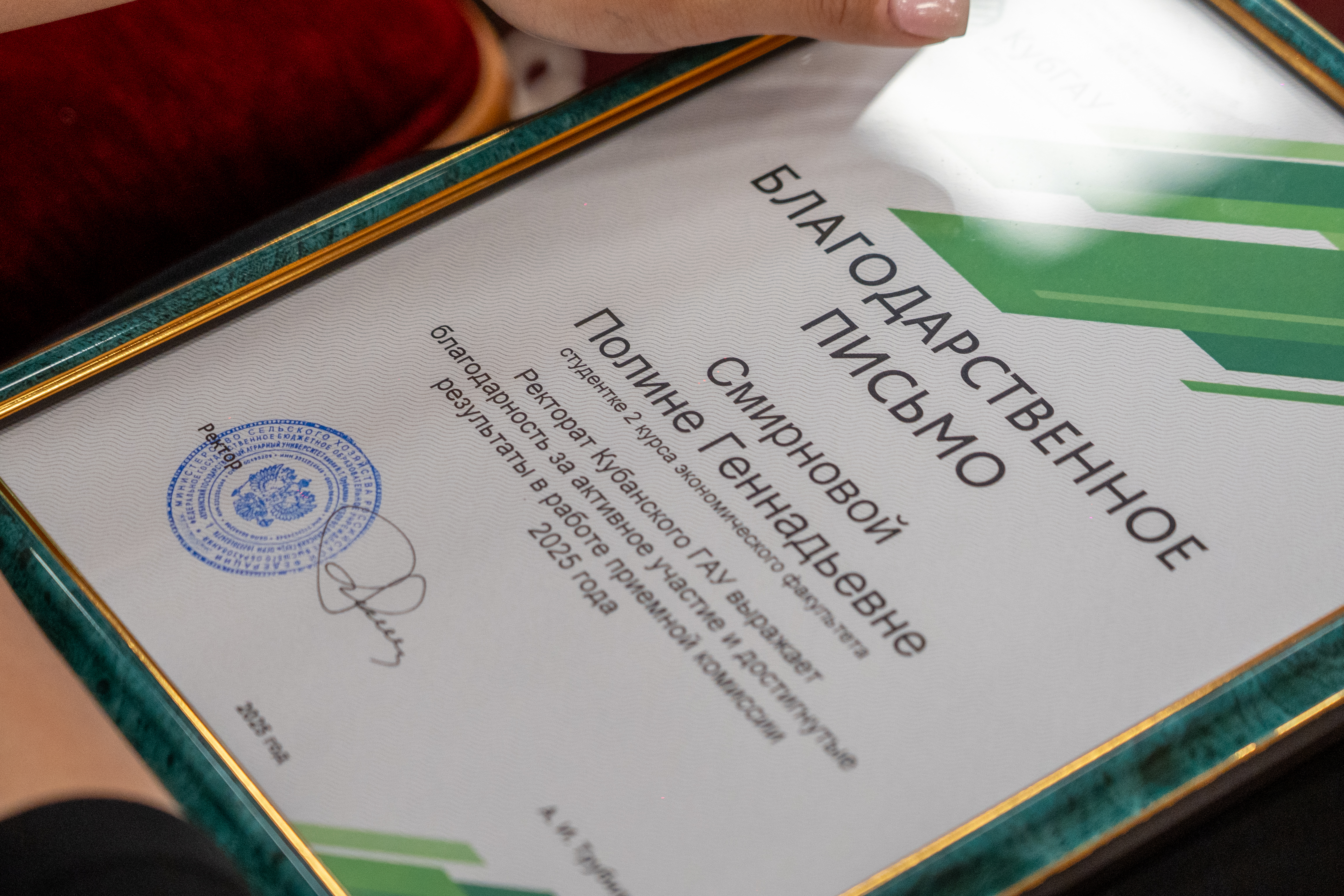 Ректор Кубанского ГАУ Александр Трубилин, подводя итоги, выразил глубокую благодарность всем сотрудникам приёмной комиссии за добросовестный труд и плодотворную работу. В знак признания их заслуг им были вручены благодарственные письма.