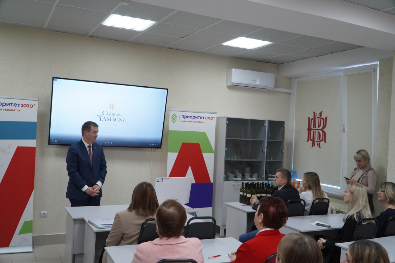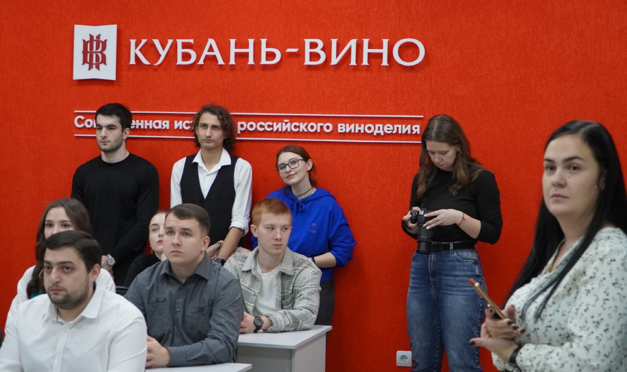 После окончания торжественной части мероприятия заведующий производством ООО «Кубань-Вино» Артем Андреевич Васильев провел открытый урок по виноделию для сотрудников и студентов факультета.