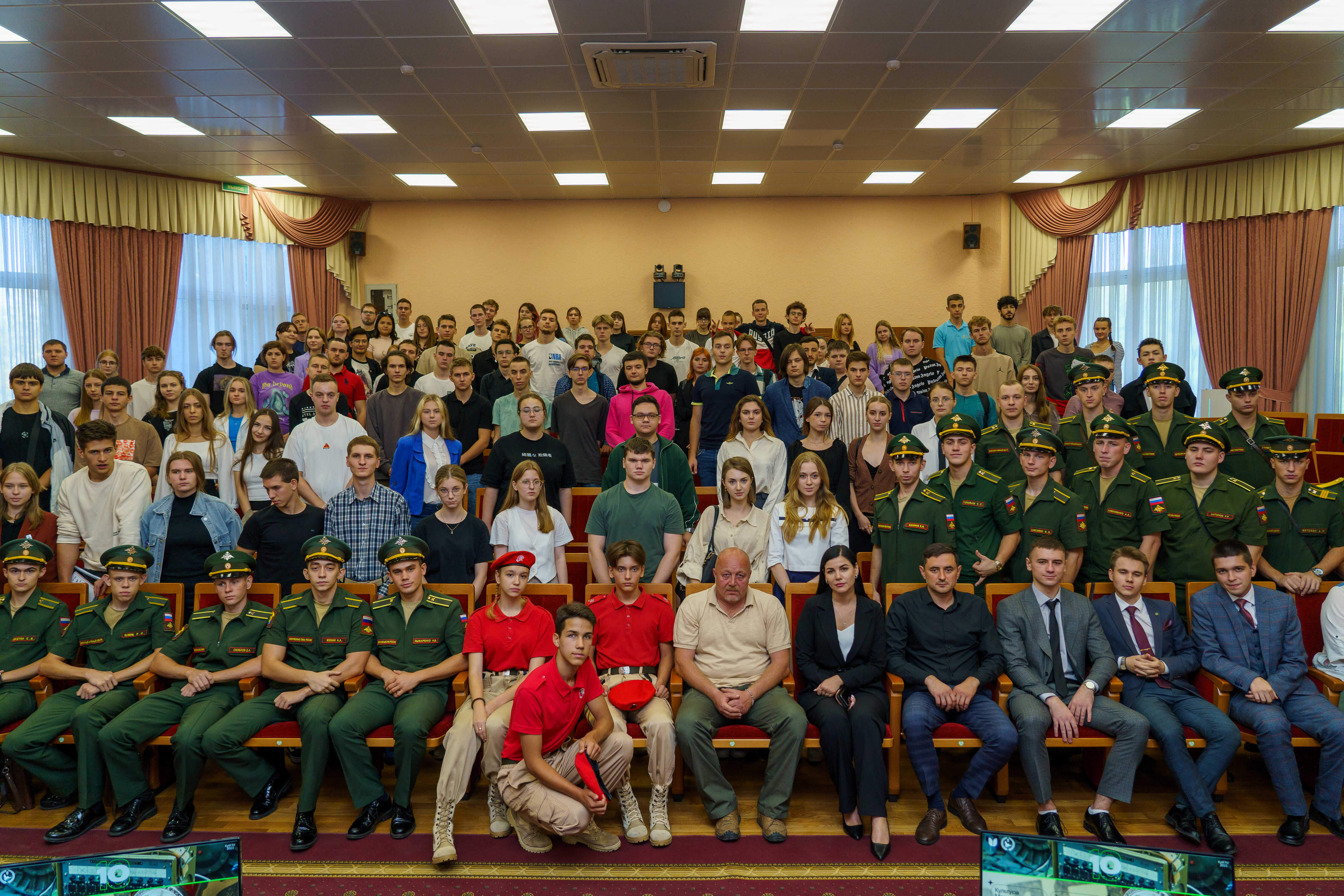 Начальник управления по воспитательной работе КубГАУ Владимир Сиренко рассказал ребятам об успехах университета в сборе гуманитарной помощи и средств на приобретение необходимой техники для участников СВО и жителям новых территорий.