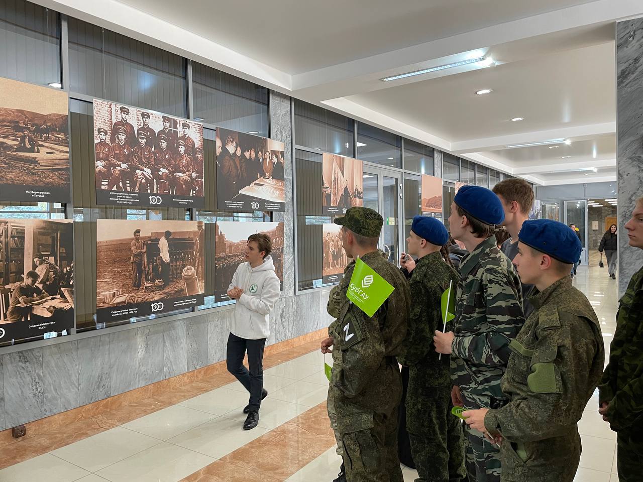 Также ребятам провели экскурсию по фотовыставке "История Кубанского ГАУ. Взгляд сквозь столетие" в холле главного корпуса, где поисковики рассказали об истории университета от начала его основания до наших дней.
