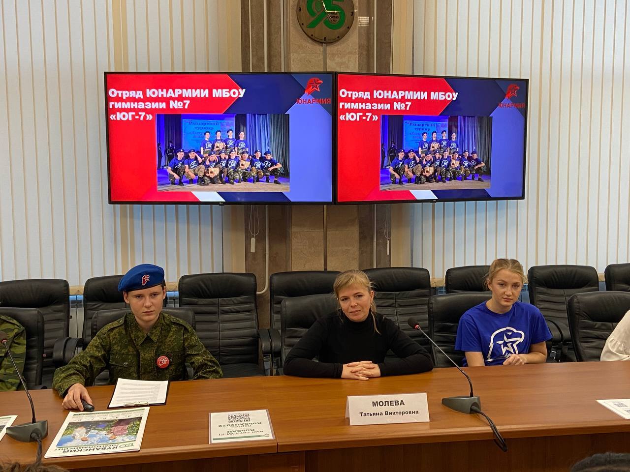 Удивительная встреча прошла в конференц-зале за круглым столом. Перед юнармейцами выступили: