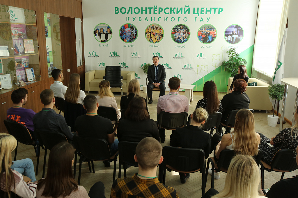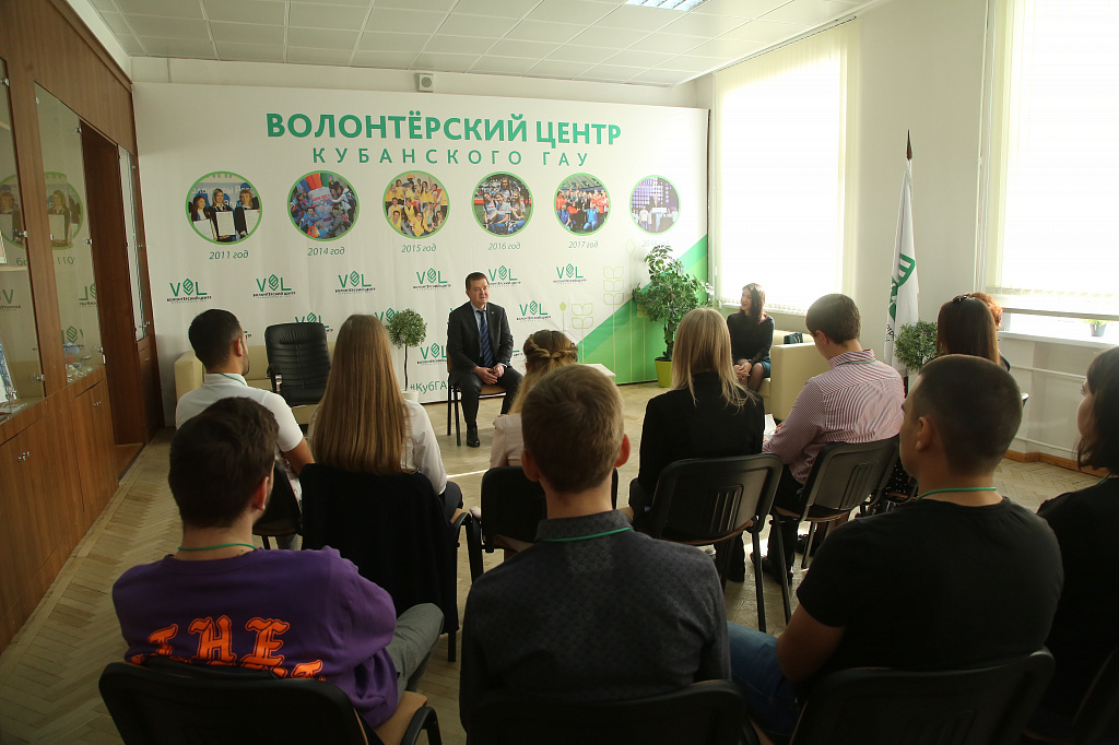 Сегодня ректор КубГАУ Александр Трубилин провел первую встречу со студентами, которые принимают участие в “Бизнес-школе Кубанского ГАУ”. В волонтерском центре собрались слушатели текущего и предыдущего, пятого, потока, чтобы обменяться мнениями с Александром Ивановичем.