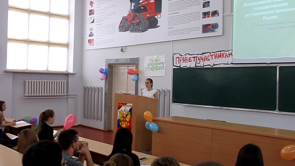 29 апреля 2016 г. на факультете управления КубГАУ прошло пленарное заседание IV Международной научно-практической конференции «Экономика и управление: актуальные вопросы теории и практики», в которой приняли участие победители студенческих конференций пяти вузов города Краснодара: Краснодарского кооперативного института (филиала) Российского университета кооперации, ФГБОУ ВПО «Кубанский государственный технологический университет», ФГБОУ ВПО «Кубанский государственный аграрный университет», ФГБОУ ВО «Кубанский государственный университет» и Частного образовательного учреждения высшего образования Южный институт менеджмента. Конференцию проводил факультет управления. Декан Кудряков Владимир Георгиевич открывал заседание. Из всех пяти участвующих вузов к нам приехали именитые гости из профессорско-преподавательского состава. Темы докладов участников были интересными – о том, что ждет Россию в ближайшей перспективе, как преодолеть кризис экономики, как развивать человеческий капитал и идти к экономике знаний. Каждому участнику было задано много вопросов. Особенно страшными нам казались вопросы, заданные присутствующими учеными разных вузов. Однако участники блестяще справились с ответами на вопросы. Между студентами разгорелась нешуточная борьба за призовые места. После тайного голосования были определены итоги конференции. Первое место с докладом на тему «Использование опыта ФРГ в государственном регулировании экономики России» заняла студентка 3 курса бакалавриата направления «Государственное и муниципальное управление» ФГБОУ ВПО КубГАУ Саранина Юлия Сергеевна. Поздравляем Юлию, и желаем ей дальнейших успехов в науке!