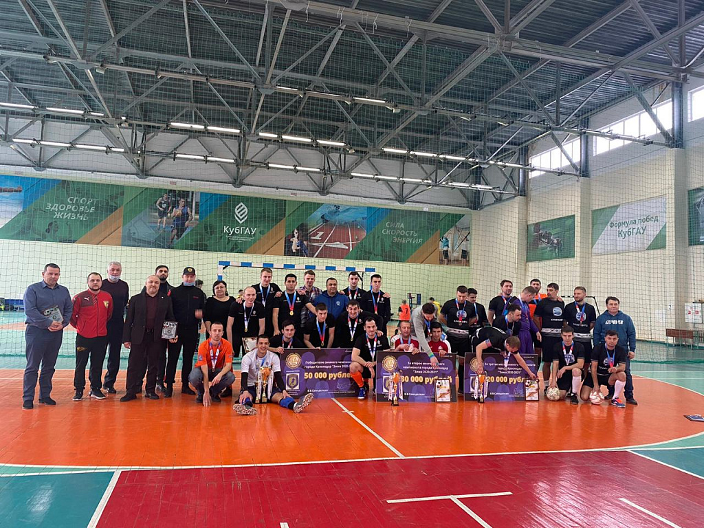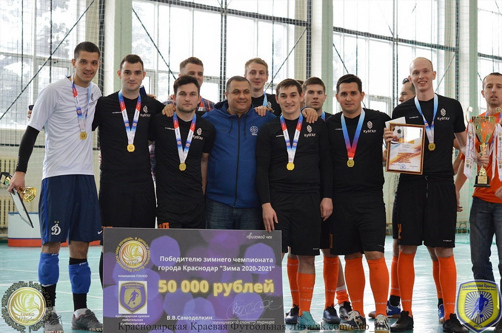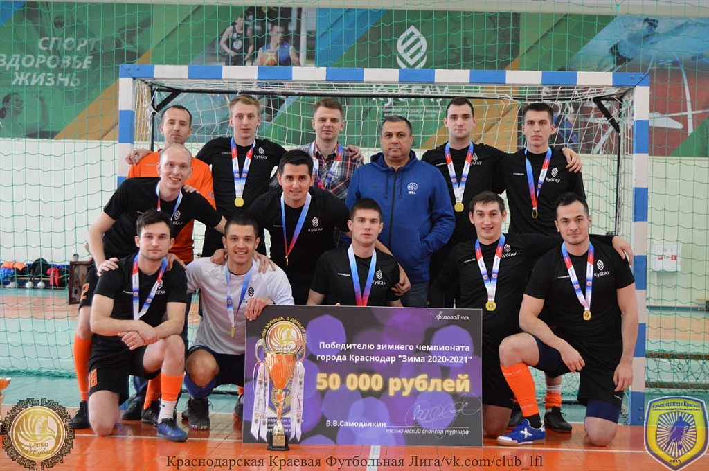 14 февраля состоялся завершающий матч чемпионата ККЛФЛ 5х5 «Зима 2020 – 2021» Он прошел на базе спорткомплекса Кубанского ГАУ. За данным матчем зрители могли наблюдать в прямом эфире. Игра была, по-настоящему жесткой и интенсивной. Уже в первом тайме судьи показали 5 желтых карточек игрокам команд. Во втором тайме уже пришлось прибегнуть к красным карточкам, что привело к удалению 7 футболистов с поля. Несмотря на все сложности и накал страстей, победителем первой лиги чемпионата ККЛФЛ 5х5 «Зима 2020 – 2021» стала команда Кубанского ГАУ! Поздравляем наших спортсменов и желаем им новых побед!