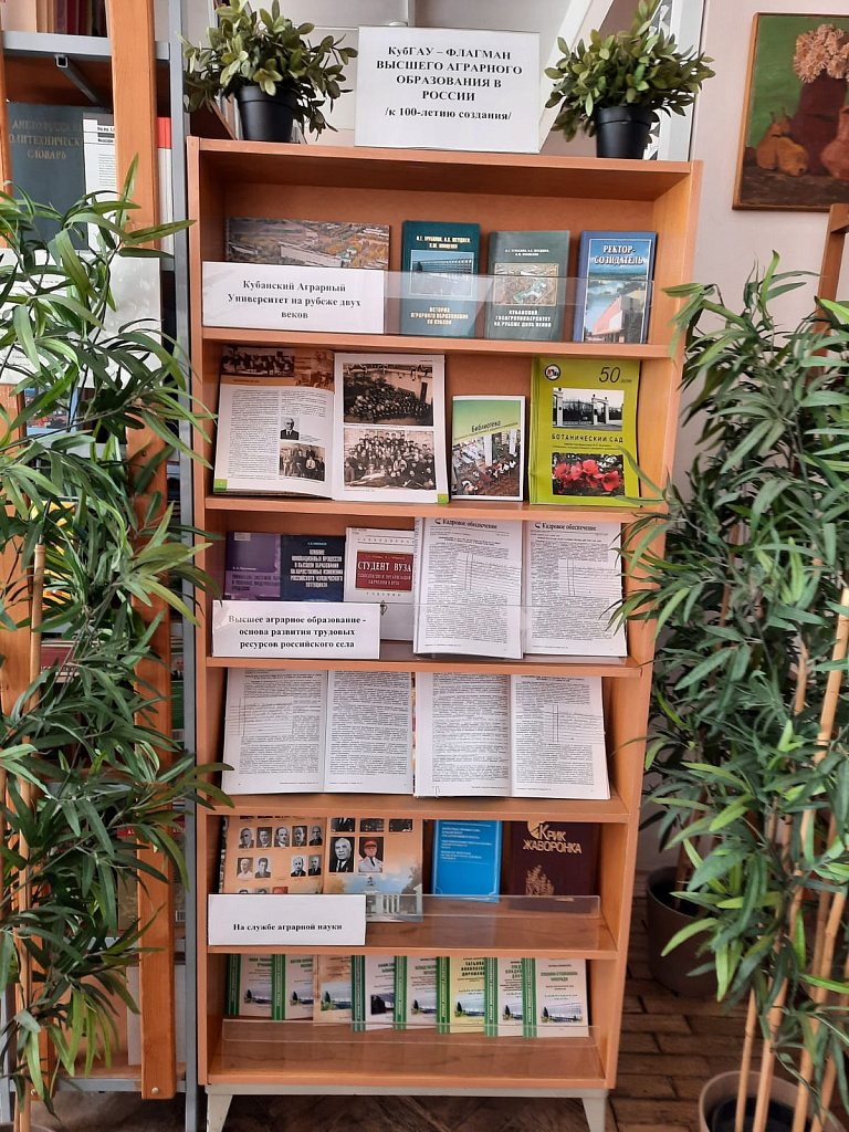В универсальном читальном зале научной библиотеки КубГАУ оформлена книжная выставка «КубГАУ – флагман высшего аграрного образования в России» к 100-летию образования».