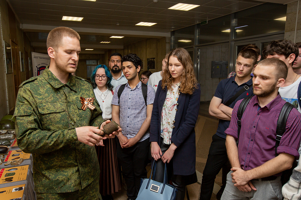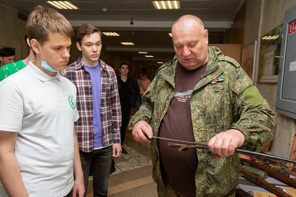 Самой занимательной частью мероприятия стала экскурсия по выставке военных экспонатов. Студенты разных факультетов увидели оружие военных лет, каски, гранаты и бытовые вещи воинов Красной Армии и фашисткой Германии.