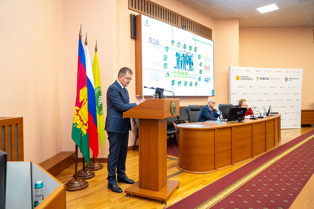 В Кубанском ГАУ состоялось заседание ученого совета, где были подведены итоги деятельности вуза за 2025 год и обозначены ключевые направления развития на 2026 год. Ректор отметил, что по данным мониторинга эффективности Минобрнауки РФ вуз выполняет все установленные показатели, а по ряду направлений демонстрирует результаты выше пороговых значений. Существенно укреплены позиции в авторитетных рейтингах: вуз вошел в ТОП-100 российских университетов, а среди аграрных занимает место в тройке лидеров.