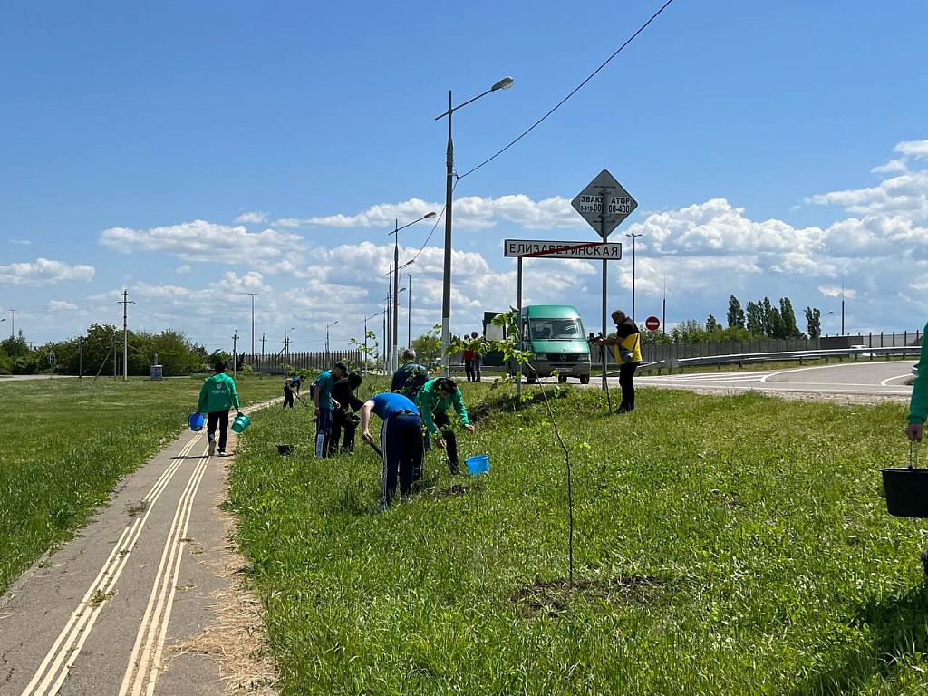 Студенты Кубанского ГАУ и ученики 75 и 76 школ высадили аллею Памяти Героев в станице Елизаветинской в честь героев Великой Отечественной войны – освободителей города Краснодара.