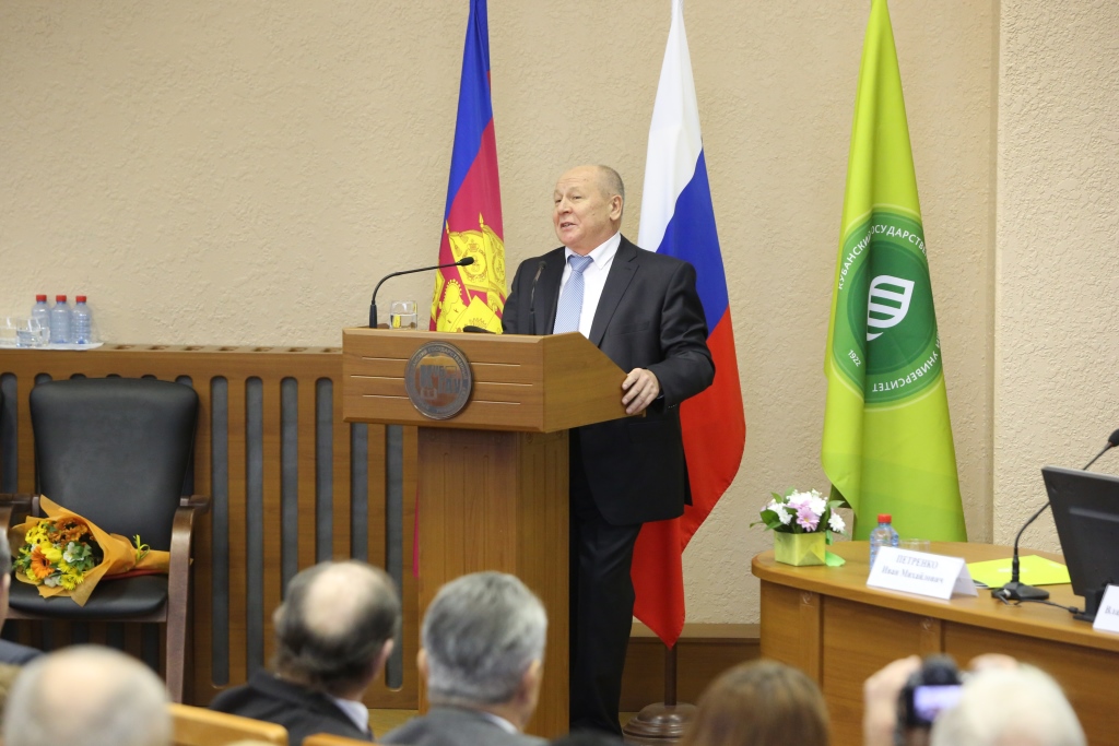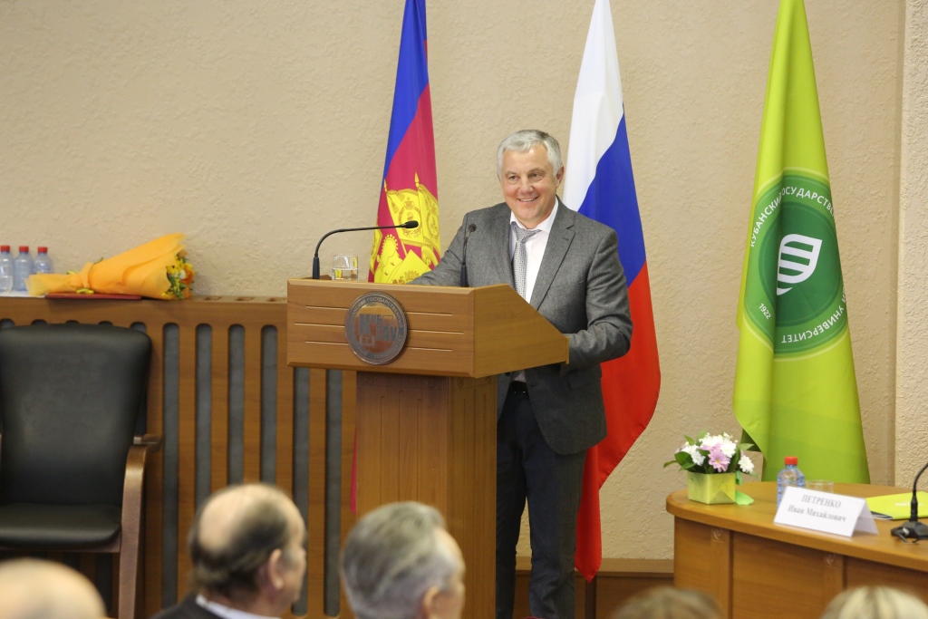 Ректор университета А. И. Трубилин сердечно поприветствовал собравшихся. В своем выступлении он отметил, что факультет агрохимии и почвоведения разительно изменился, вырос за пять десятилетий и выпустил из своих стен многих успешно работающих специалистов, известных ученых.