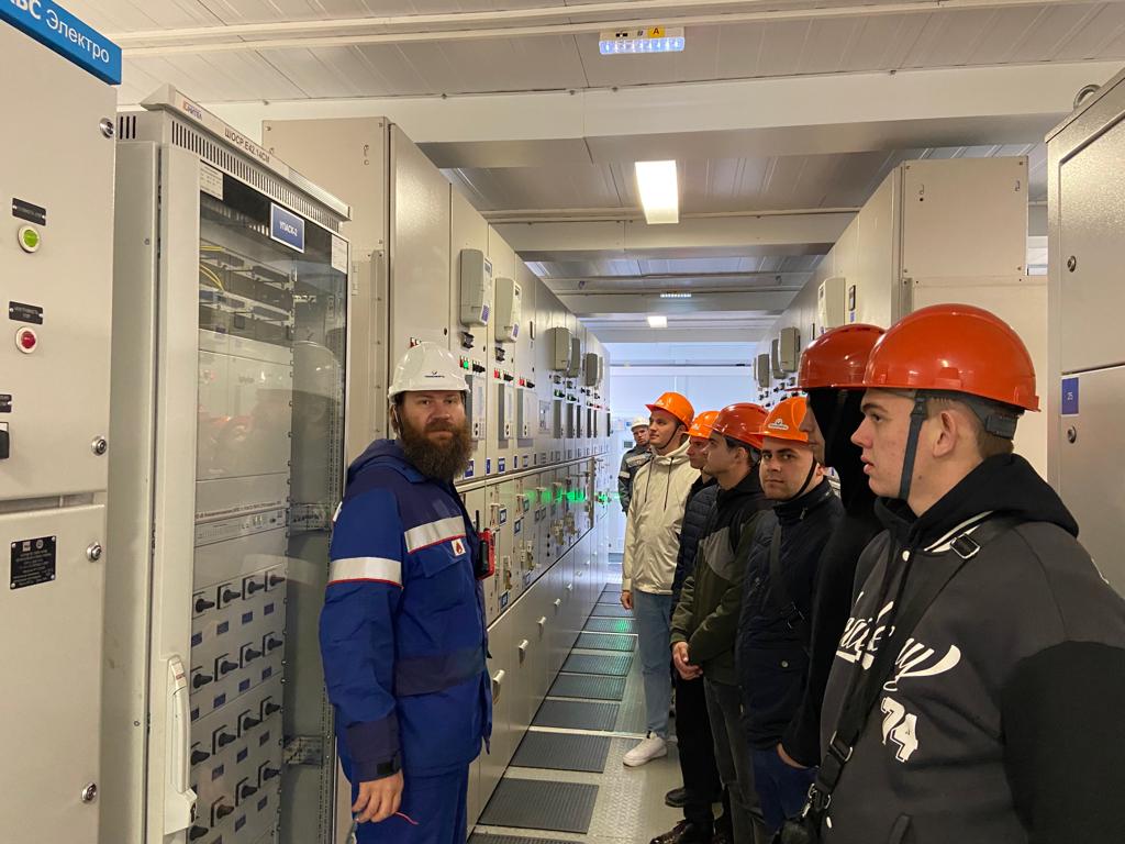 На станции ребята ознакомились с особенностями эксплуатации электрооборудования и систем автоматизации в нефтяной отрасли. Посмотрели насосные агрегаты на напряжение 6кВ, ознакомились с устройством подстанции 110/6/0,4 кВ, изучили оборудование автоматизированной станции пожаротушения.